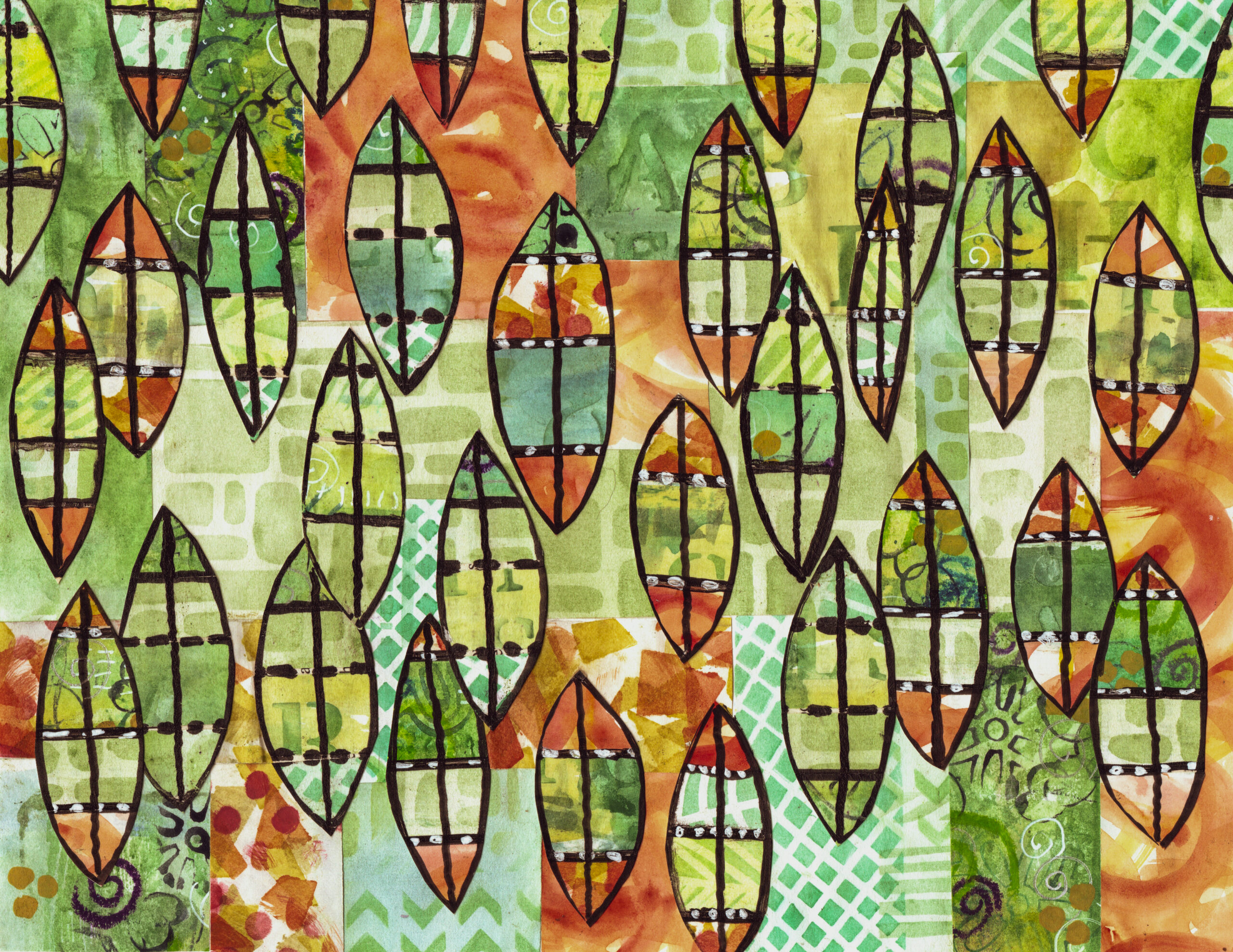 Sashiko Stitch Pockets A true trash to treasure project that utilizes watercolor, assorted waste papers and a white gel pen