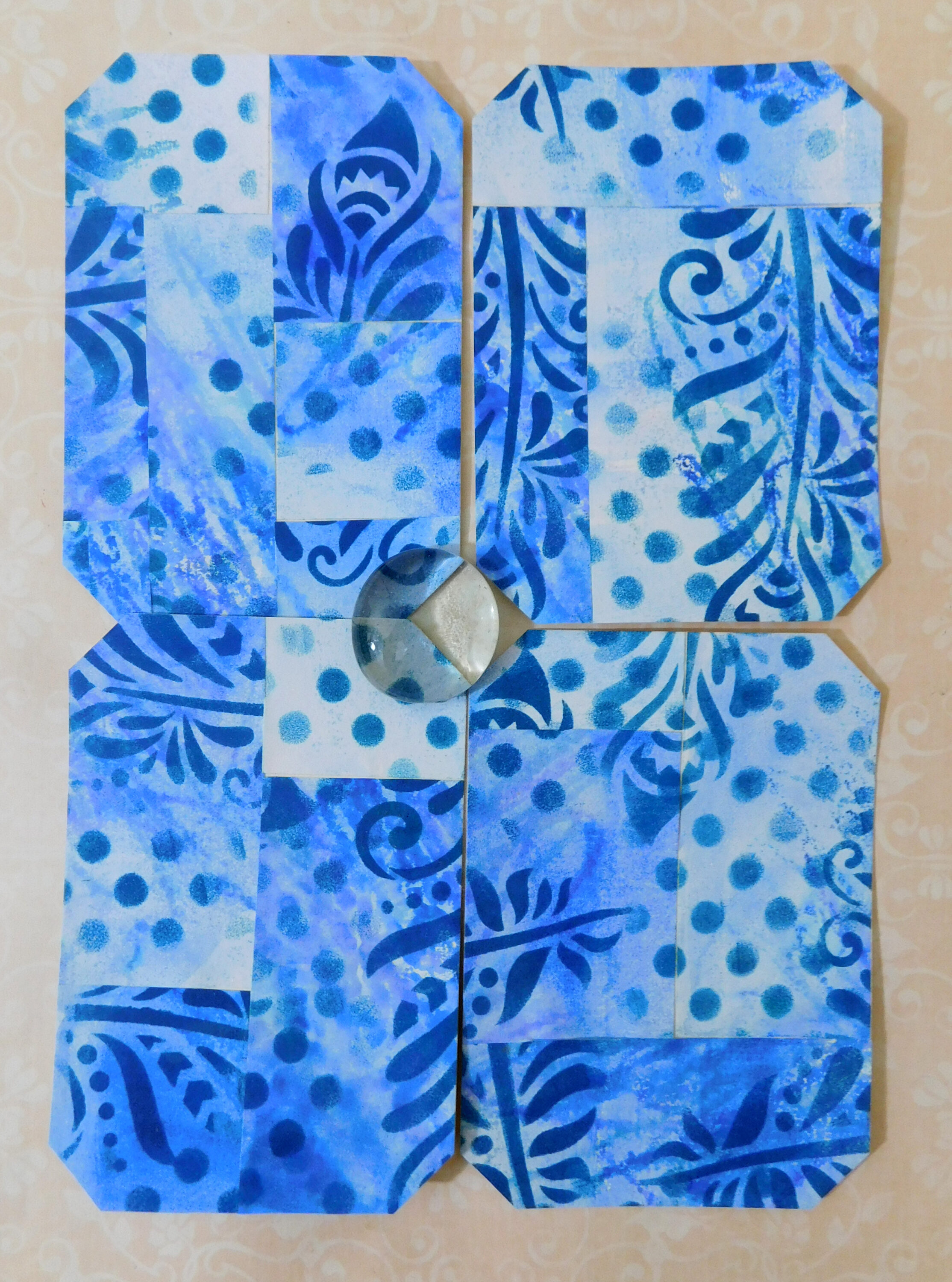 After securing your pieces decide on the size of your final cuts, turn your paper design side down and surprise cut them as well.